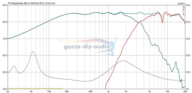 Man sieht hier u.a. schön, wie der schmale Teil der Linie fast vollständig mit Sonofil ausgekleidet ist, während im hinteren Teil (eher unüblich) der TMT arbeitet und darunter ein akustischer Sumpf effektiv Mittelton-Anteil filtert.