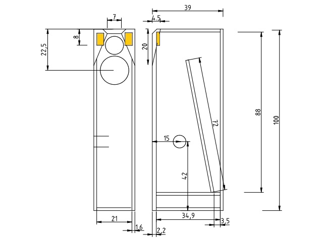 Nachstehend nochmal der Bauplan, aus dem die Funktion der Eckleiten gut hervorgeht. Man sieht in der Seitenansicht, dass diese Eckleisten nötig sind, um die Fasen