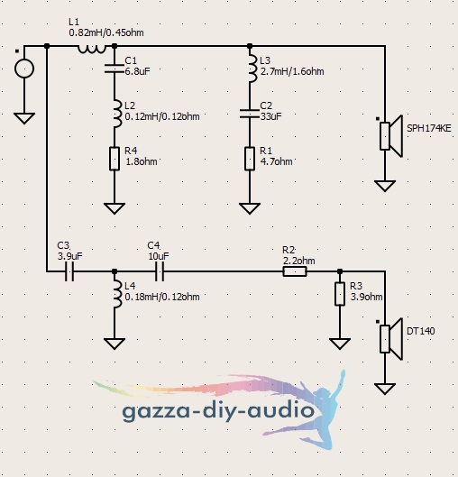 Ich habe dann mit diesem Testgehäuse die Messungen für die Simuation der Frequenzweiche angestellt. Aufgrund der gutmütigen Einzelfrequenzgänge der Chassis konnte ich schnell mehrere gangbare Beschaltungsvarianten entwickeln. Am Ende haben Alex und ich uns für eine Variante mit höherer Trennung zwischen TMT und HT entschieden. Dies kam dem Charakter des TMT mit dem weitreichenden FG entgegen und stellte ein ausgewogenes Verhalten der Box unter Winkeln in Aussicht. Damit sollten wir Recht behalten.